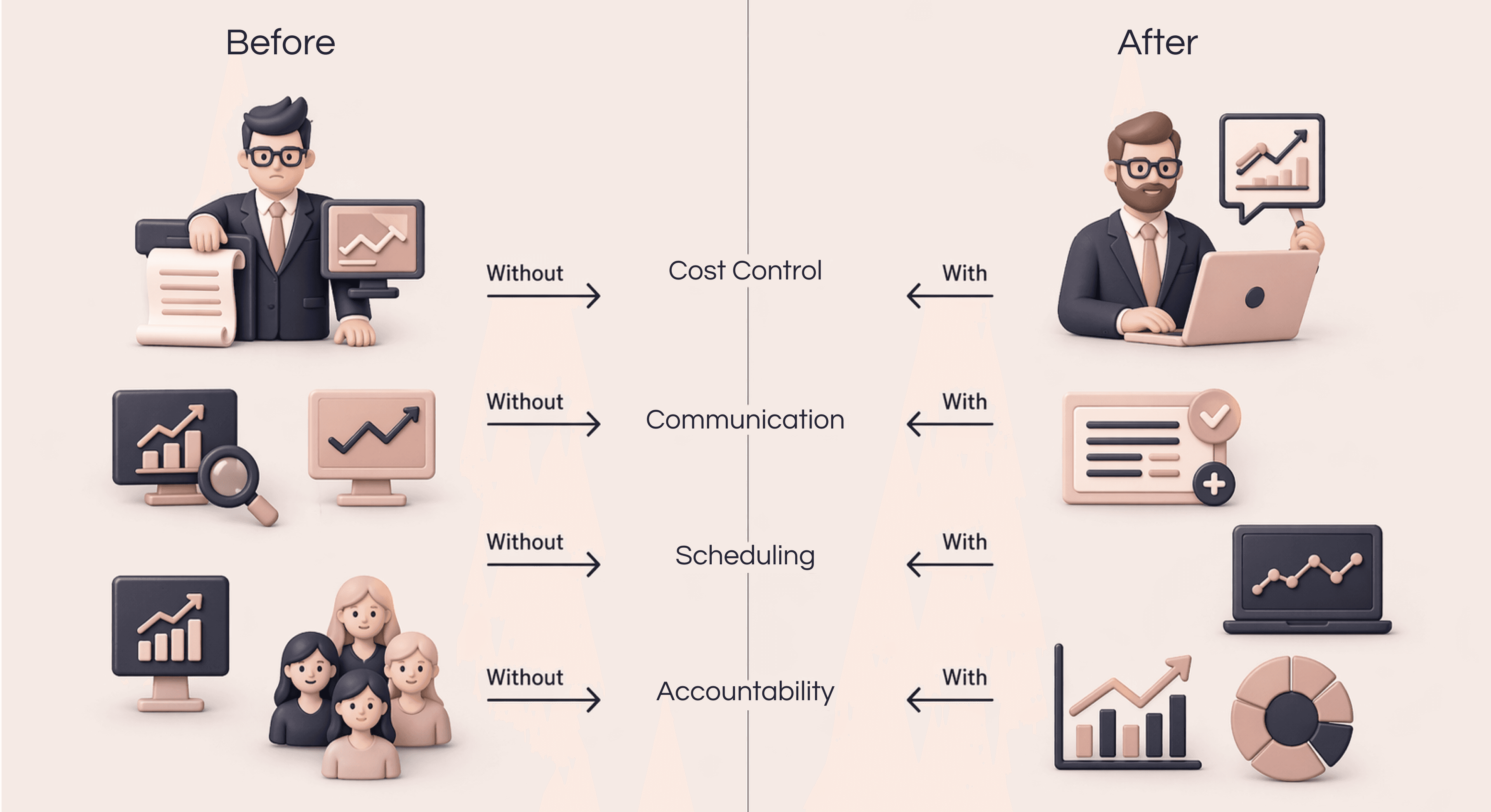 In construction, a WBS supports better planning, cost control, scheduling, procurement, reporting, resource allocation, and long-term asset management. Without a clear WBS, it becomes difficult to coordinate contractors, track progress, and manage project risks.
